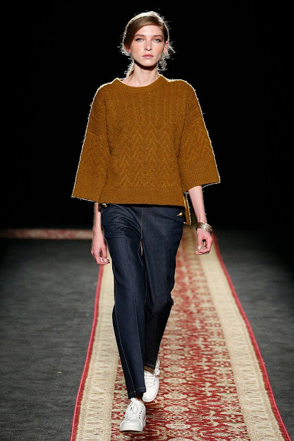 Toda historia tiene un principio y en esta ocasión el encargado de hacerla comenzar era Virgil-Henry Mathet el capitán del barco, un barco que da la impresión de zarpar en Marruecos, India y sitios por el estilo debido a las largas alfombras que cubrían Llotja de Mar y por supuesto, por el camino que "Ultramar" nombre de la colección nos empezaría a mostrar. Una vez más la directora artistica de la firma Sybille Gramaglia hizo que la mujer a la que quiere llegar, caminara con mucha fuerza pero con esa feminidad que tiene desde que se pone alguna de sus prendas, obviamente el punto es el actor principal permitiendo que las rayas marineras, rayas en vertical, cuadros minúsculos y pines que estampan insignias de la marina se adhieran a suéteres ajustados al cuerpo, pantalones y vestidos perfectos que muestran en su mayoría, los tobillos.